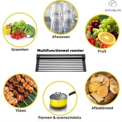 Kitch&Life Afdruiprek Oprolbaar – Mat Zwart – Pannenonderzetter – Afdruipmat – Keukenrek 3-in-1