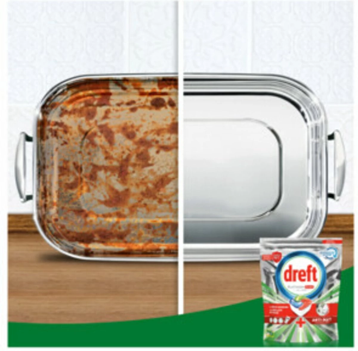 De beste tabletten voor het reinigen van moeilijke etenswaren van Dreft maken je vaat weer als nieuw schoon