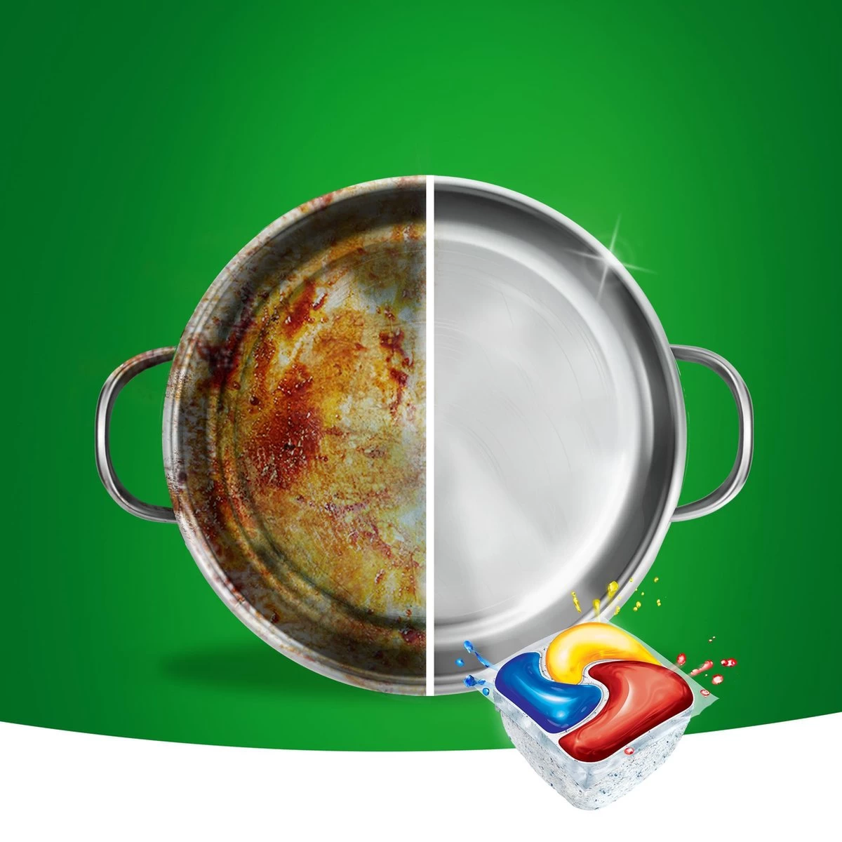 Dreft Platinum vaatwastabletten verwijderen vet en vuil en zorgen voor een stralend schone vaat én vaatwasser, op ieder programma.