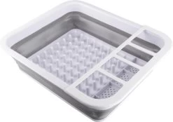 Is je afwas droog? Dan is dit afdruiprek gemakkelijk op te vouwen en op te bergen. Wat eerst een ruime bak voor al je keukengerei was, wordt makkelijk opgevouwen tot een ruimtebesparende plaat. Met gemak op te bergen in een la of in een kast. Dankzij het lichte gewicht ook handig om mee te nemen op de camping.